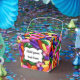 Colourful, multi coloured candy sprinkles on takeout style favour boxes to personalise with your own text.