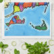 Colourful Map of Cape Cod, Martha's Vineyard and Nantucket showing the various towns. A towel for anyone who loves to spend the summer at these popular vacation spots.