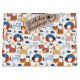 Cartoon dog faces, bones and paws seamless pattern with illustrations of paws in purple tones. Buy this for yourself or as a great gift for your dog- loving friends. Customise the text "Birthday Greetings", font and colour changes.