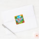 Colourful Cartoon Elephant in Tropical Landscape Square Sticker