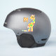Cheerful illustration of a cute cartoon giraffe with multicolour spots and initial.