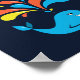 Cute whale personalised poster with a cartoon illustration of a smiling whale splashing bright blue, yellow and orange swirls on dark blue background and customisable text. This cute kids design is great for all the whale loving girls out there who also happen to love fun, bright colours.