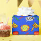 Fun colourful boy's super hero action words wrapping paper. A blue cartoon looking background, with yellow, green, red, and white words and action bubbles decorate this fun wrapping paper. Customise to add any additional text you want.