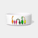This is a heavy, durable bowl decorated with Tibbies of many colors, the perfect size for hungry/thirsty Tibs. The design is interesting and printing clear.