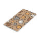 A colourful pattern - orange, grey, black, brown, white - of cats and paw prints against a burlap background. Perfect for the animal-lover!