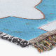A quality printed throw has its advantages. This is a much finer weave throw than its loopier cousins, and though lighter, it is worth the investment for custom room accessorizing. The back is much prettier than the typical brown, and the fringe on the long sides very vivid, the selvage nicely done. Before photographing, I washed the throw in cold water, delicate, with a thicker woven throw the same size. On tumble dry low, this throw was dry in half the time as the other. This is a very practical quality if you use throws for furniture covers or to wrap up in frequently. The sleekness of the fabric makes it a great layer for accenting or protecting without the feeling of sitting on too much stuff. Perfect for napping or when you feel a light chill coming on. The color printing is beautiful and on this fabric, matched the design and color of my Photoshop image. This is an advantage for blending room fabrics and colors. The fringe on the short sides prints the colors from the design image and therefore varies from the side fringe. I streaked a white fractal line through the plaid pattern to give the illusion of weaving. This printed as crisp as an illusory thread, and put some white in the short side fringe, showing another advantage of print vs loomed- for artistic purposes, line lines, detail, and color integrity can be planned and preserved. My loomed throws have color limitations and more of a needlepoint texture. Print throws reproduce an exact image. The throw felt a little stiff straight out of the package, but this went away in the first delicate wash. Of course I searched the wash water for ink or bleeding and there was none.