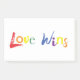 Modern, playful, colourful graphic design of a saying "Love wins" in LGBT colours. Creative, experimental, cheerful typography.