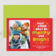 Merry and Bright in colourful letters make this Christmas flat card design a fun, cheery choice! Insert your photo and add your text to personalise!