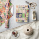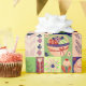 Beautiful, colourful wrapping paper that matches some of the colours of the main design. This cute, whimsical, cool wrapping paper with orange, blue, green, and salmon-pink colours features irregular squares and quadrants with cute decorative paintings of bunnies, eggs, flowers, and egg baskets.