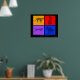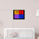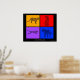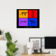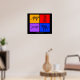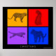 Purchase this poster of cheetahs in colours of orange, red, purple and blue.