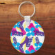 Colourful Chic Floral & Dot Pattern with Leaves Key Ring