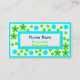 Whimsical and colourful, these cute childrens calling cards have flowers and a polka dot frame, around the customisable area where your or your child's name and information goes. Beautiful teal and bright green makes these calling cards feel like a touch of summer.