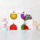 Colourful glossy Christmas bulb wrapping paper roll with red, green, gold, orange, and purple bulbs on white background.