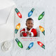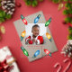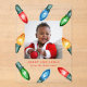 Brighten the holiday season with this festive acrylic Christmas card featuring a cheerful design of watercolor Christmas bulb lights in red, green, blue, and orange. Your square photo is framed by these colourful lights on a transparent acrylic background, with your custom greeting and family name in bold red lettering.
