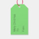 Festive Christmas gift tags with graphics a yellow, green, blue, and a red retro style Christmas light bulbs. Colourful graphic text reads Merry and Bright. The backside is done in solid green, with custom black text ready to personalise to read what you want. Matching wrapping paper is available.