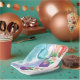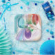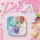 Pretty paint pour design of three Christmas balls, is printed on paper plates. The Christmas balls are painted in a paint pour type design with a spray of a pine needle branch on the side. The colours in the design are shades of turquoise and teal, orange, purple, and pink. Thank you for shopping at CherylsArt on Zazzle.