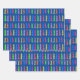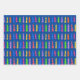 Colourful Christmas Trees on Blue Wrapping Paper Sheet