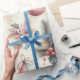 This delightful wrapping paper features a whimsical Christmas design filled with vibrant ornaments, charming trees, and playful reindeer.