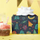 Brightly coloured wrapping paper features a playful pattern of Christmas trees, ornaments, and festive treats, perfect for adding joy to gift-giving during the holiday season.