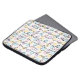 Colourful circles and black text writing seamless pattern over white background. Customisable lap top sleeve template