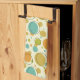 Add that splash of fun and colour to your kitchen with this funky circles mid century modern styled kitchen towel. This whimsy geometric retro pattern features circles and dots in the colours of turquoise blue, gold, avocado green, orange, and black, on a light cream background.