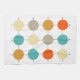This colourful mid century modern kitchen towel features turquoise blue, two shades of orange, cream, and tan circles on a black lined grid. Add that bit of fun to your kitchen decor!