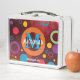 This vibrantly coloured LUNCHBOX features circles, rings, spots and dots in different sizes, thicknesses and colours, mainly cyan, pink and yellow, against a deep orange background. There is a placeholder monogram and name in the centre - each with a slight drop shadow. There is also a Scripture verse at the bottom. These are customisable, so you can add your name/text and monogram. This LUNCH BOX would be an ideal gift for birthdays, Christmas, Mother's Day, Father' Day, Back to School, University or College students, etc. Other matching items are available in the CIRCLES Collection, so you can create some awesome gift sets, eg. for your family, students and friends, etc.