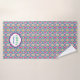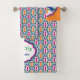A design inspired by vintage circus posters depicting a pair of blue, plumed show ponies set against a starburst in teal and stripes of vivid orange, pink and green embellishes this set of bath towels that are easily personalised. This cheery graphic matches other items in my Colourful Circus Fun collection.