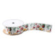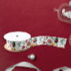 Satin Ribbon with a cute design featuring red and orange christmas citrus cookies and fruits pattern on a white background.