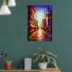 Colourful art of a road going through a city at night with the full moon in the sky. This is a AI generated art.