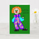 A lively, cheerful clown knocking on a green door with a birthday wish.