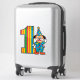 Vibrant clown character stands beside a large rainbow-striped number, perfect for children's birthday party visuals. Bright, playful colours convey joy and festive mood for family-friendly event themes.