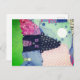 Colourful Collage with Tiny House, Moon, Cat Postcard