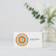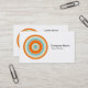 A business card template with an attractive colourful concentric circle motif, creating a clean modern design suitable for many types of business. Company name and business on the front of the card. Name, address, telephony, email and web address on the reverse with a repeat of the motif. The card can also be further customised.