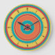 A colourful design made up of concentric circles in harmonious colours, with stylish numerals and hours and minutes scale.