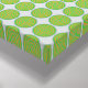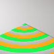 Customisable Colourful Concentric Circles Canvas with grey background below a second background of small tiled concentric circles an finally same concentric circle placed large, and cropped to reveal only one quarter of the circle, placed in the top right hand corner of the canvas. This canvas come as a set of four canvases, which together, will complete the large cropped circle.