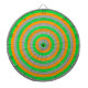 Customisable Dart Board printed with a colourful design of concentric circles.
