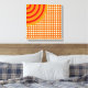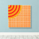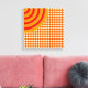 Customisable Colourful Concentric Circles Canvas with white background below a second background of small tiled concentric circles an finally the same concentric circle placed large, and cropped to reveal only one quarter of the circle, in the corner of the canvas. Four of the same canvas will work together to create a large complete circle in the middle as a split image. The background "white" can be changed to the colour of your choice.