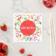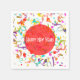 Your personalised napkin design featuring a colourful confetti toss with a red centre and message. Fill in the template field with your occasion, remove the text, and circle or click customise to select a font style size and colour you want.