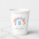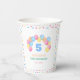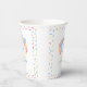 These cute and cheerful birthday party paper cups feature a colourful balloon arch with confetti border frame.