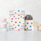 The design is a colourful one of the Christmas wish "Merry Christmas" and round confetti in pink, purple, blue, green, and grey colours. It is elegant and warm.