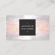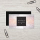 An array of cascading pink and purple-hued confetti dots create an eye-catching design pattern on this stylish business card design. Set on a white background for a beautiful contrasted motif. Your name or business name is simply styled in a black square for an instant logo layered on top of the background pattern. © 1201AM CREATIVE