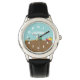The leather band makes it seem like an “older kids” watch. Easy to read the time. Clear printing and image.
