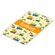A cute and colourful construction vehicles theme pattern magnet for the boys. The pattern is make up of lots of construction elements like a red and yellow dump truck carrying the debris, an orange excavator, a green front loader pushing dirt, a blue and yellow concrete mixer, orange and white cones and a yellow and black construction zone barrier. Personalise child's name within space available. Perfect for boys who love construction vehicles, toys and machines!