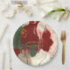 This modern contemporary styled painted abstract design features spattered paint colours in holiday colours of dark red, forest green, gold, beige and ivory blended in a fascinating pattern. Gold text on the front spells out "HAPPIEST HOLIDAYS" in modern sleek typeface. These plates add a festive sophisticated look to your holiday entertaining. They are available in 2 sizes: shown here is the 9-inch diameter size. Also available in a smaller 7-inch diameter size.