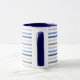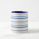 This navy blue combo mug features colourful stripes in blue, pale mint green and brown.