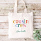 Carry the fun with our matching family tote bags featuring a cute multi-colour "Cousin Crew" text graphic in playful retro colours, personalised with your child's name. These stylish and functional bags are perfect for family outings, beach trips, or everyday use, celebrating the special bond between cousins in a colourful way!