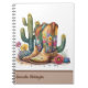 Western themed spiral notebook, with lovely artwork of a pair of colourful cowgirl boots, flowers and cactus. Custom text field, on the bottom taupe area can be personalised to read what you want. Great gift idea for her.