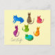 Colourful crazy cats in watercolor postcard
