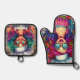 Colourful Crazy Chef Cook, Kitchen Gift Oven Mitt & Pot Holder Set - hostess gift or House warming gift